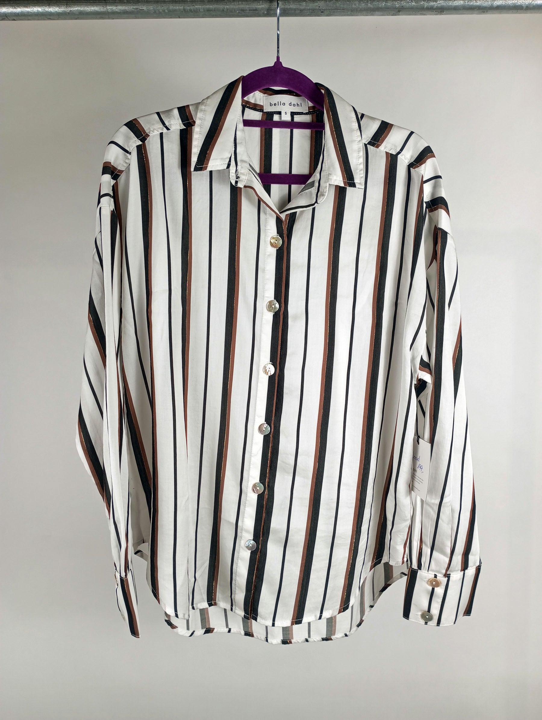 Bella Dahl Bluse Boyfriend gestreift weiß/schwarz/braun/goldlurex
