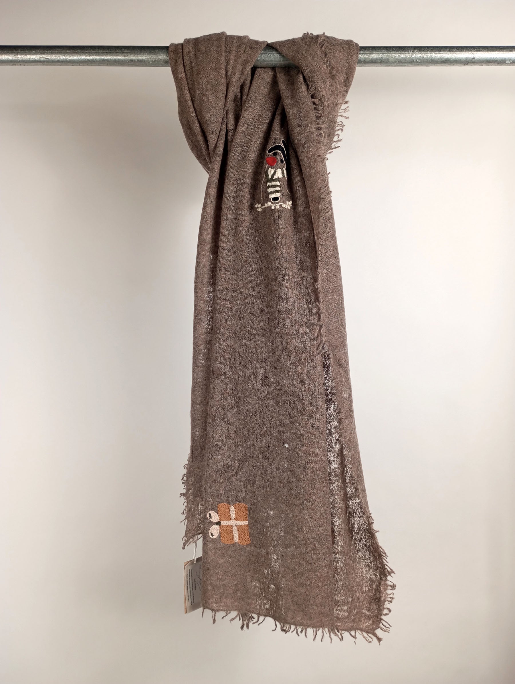 Mouleta Kaschmirschal Hand Embroidery X-MAS dark beige melange